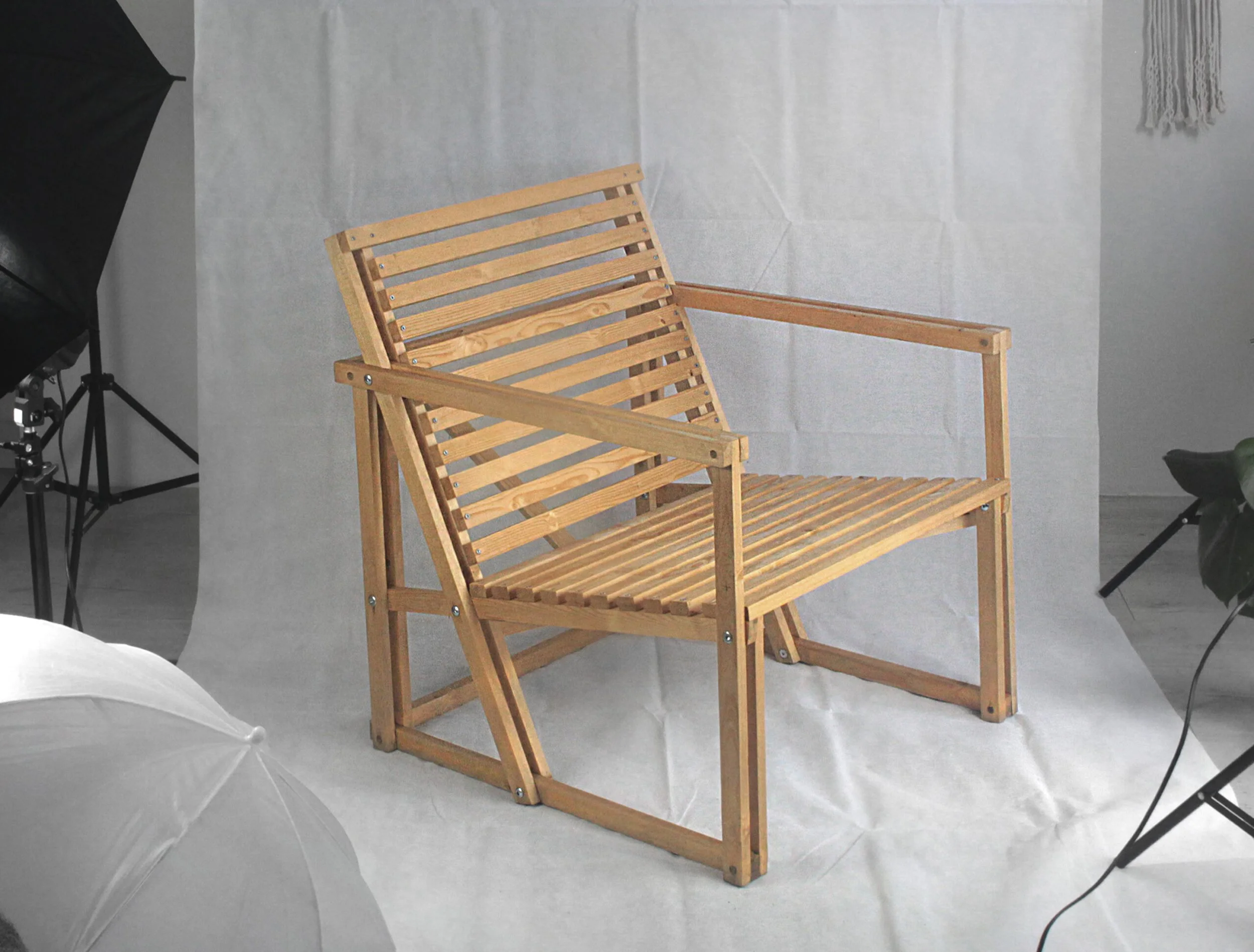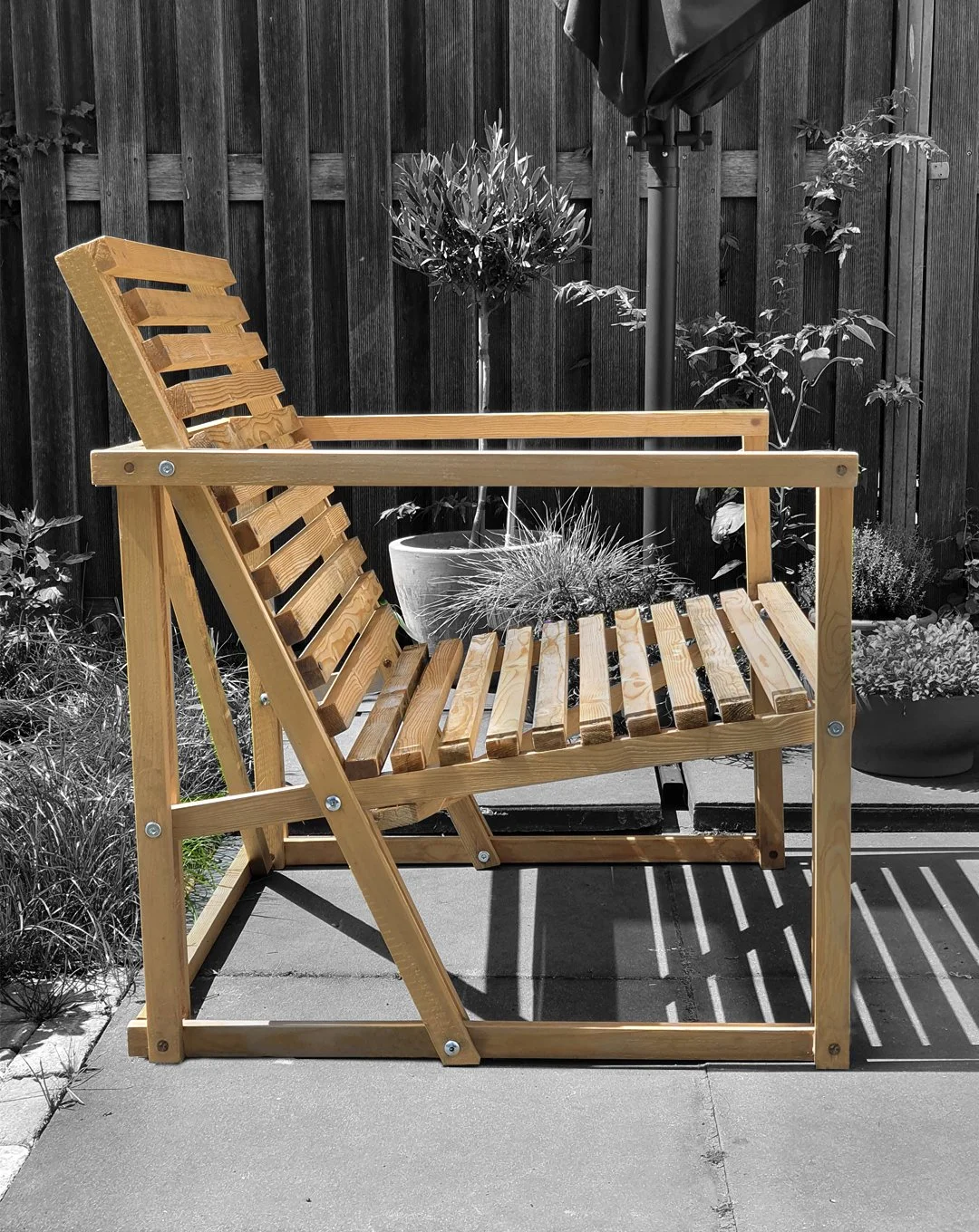 Patio chair no.1 is the first prototype of a series of garden furniture made of wooden slats.